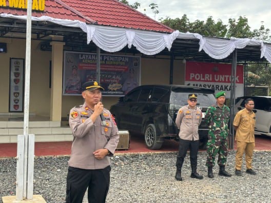 Kegiatan yang dilaksanakan di halaman Mako Polsek Muara Wahau tersebut dipimpin langsung oleh Kapolsek Muara Wahau, IPTU Sumartono, S.H., serta melibatkan berbagai unsur lintas instansi.