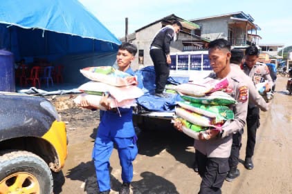 Selain menyalurkan bantuan, personel kepolisian juga melakukan pendataan terhadap warga terdampak guna memastikan distribusi bantuan berjalan tepat sasaran.